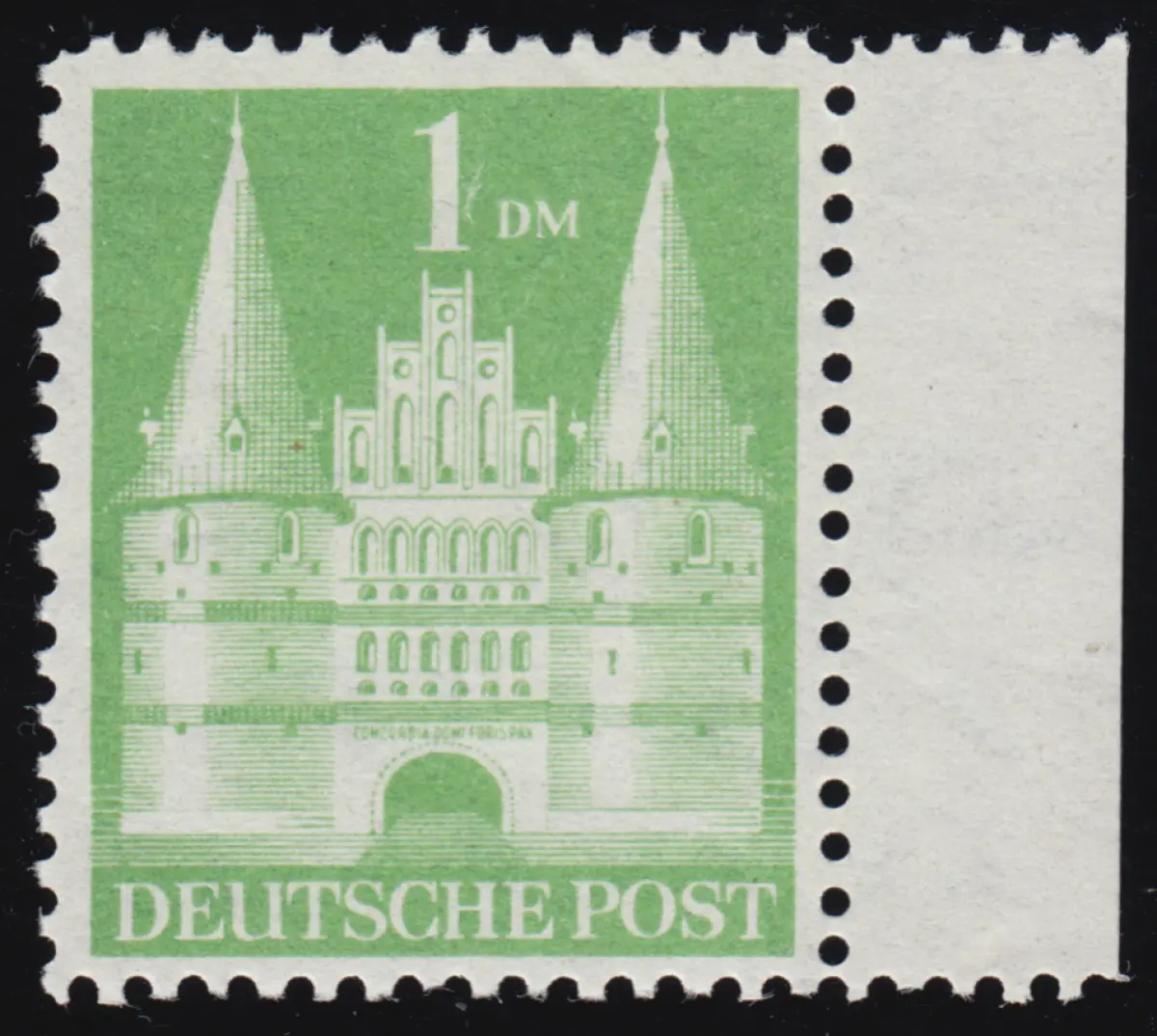 Bizone 97a I YB Bauten 1 DM., gelblichgrün, weit gezähnt **