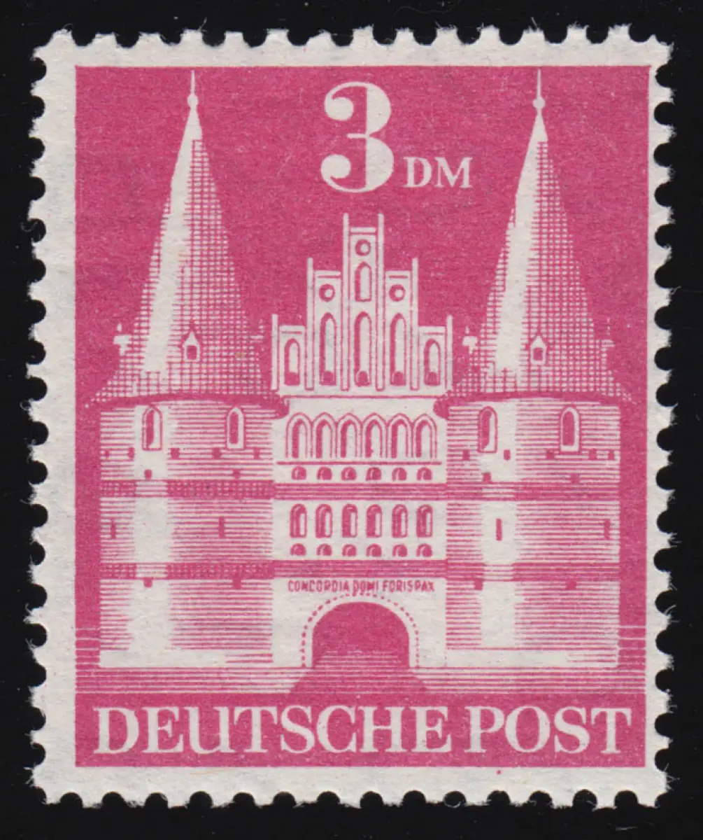 Bizone 99 I YD Bauten 3 DM., weinrot, postfrisch **