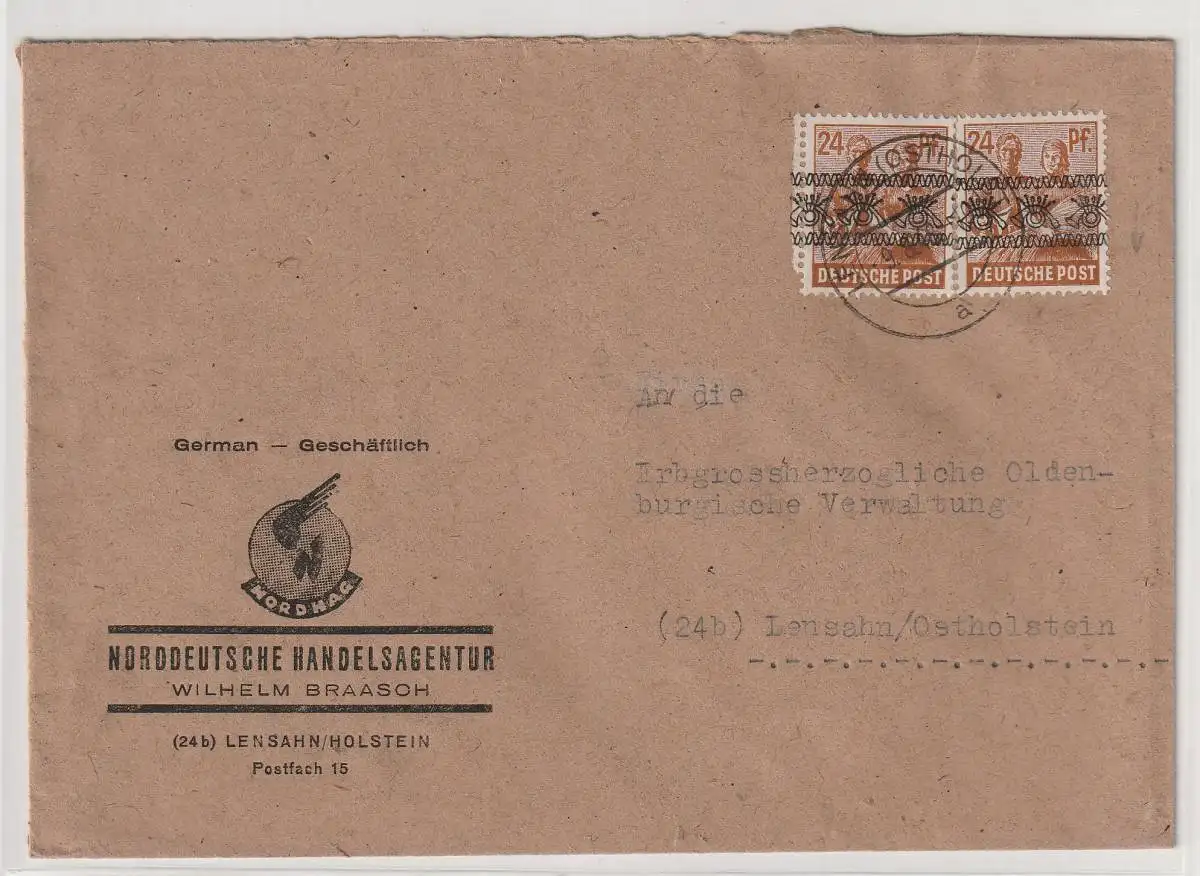 Bizone: Kopfstehender Bandaufdruck auf Firmenbrief