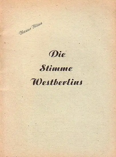 Bläser, Blasius: Die Stimme Westberlins. (Gedichte).