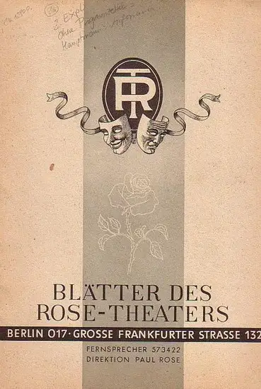 Blätter des Rose-Theaters Berlin. Paul Rose (Hrsg.): Blätter des Rose-Theaters. Programmheft: Dorothea Angermann. 1940.