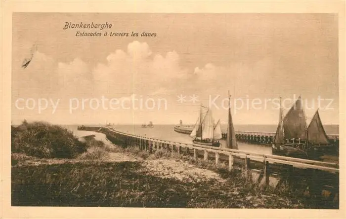 Blankenberghe Estacades a travers les dunes bateaux Blankenberghe