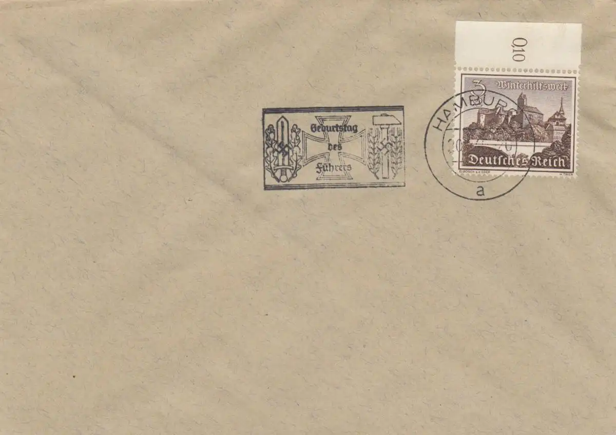 Blanko Sonderstempelbeleg: Hamburg: Geburtstag des Führers, Deutsches Reich 1941