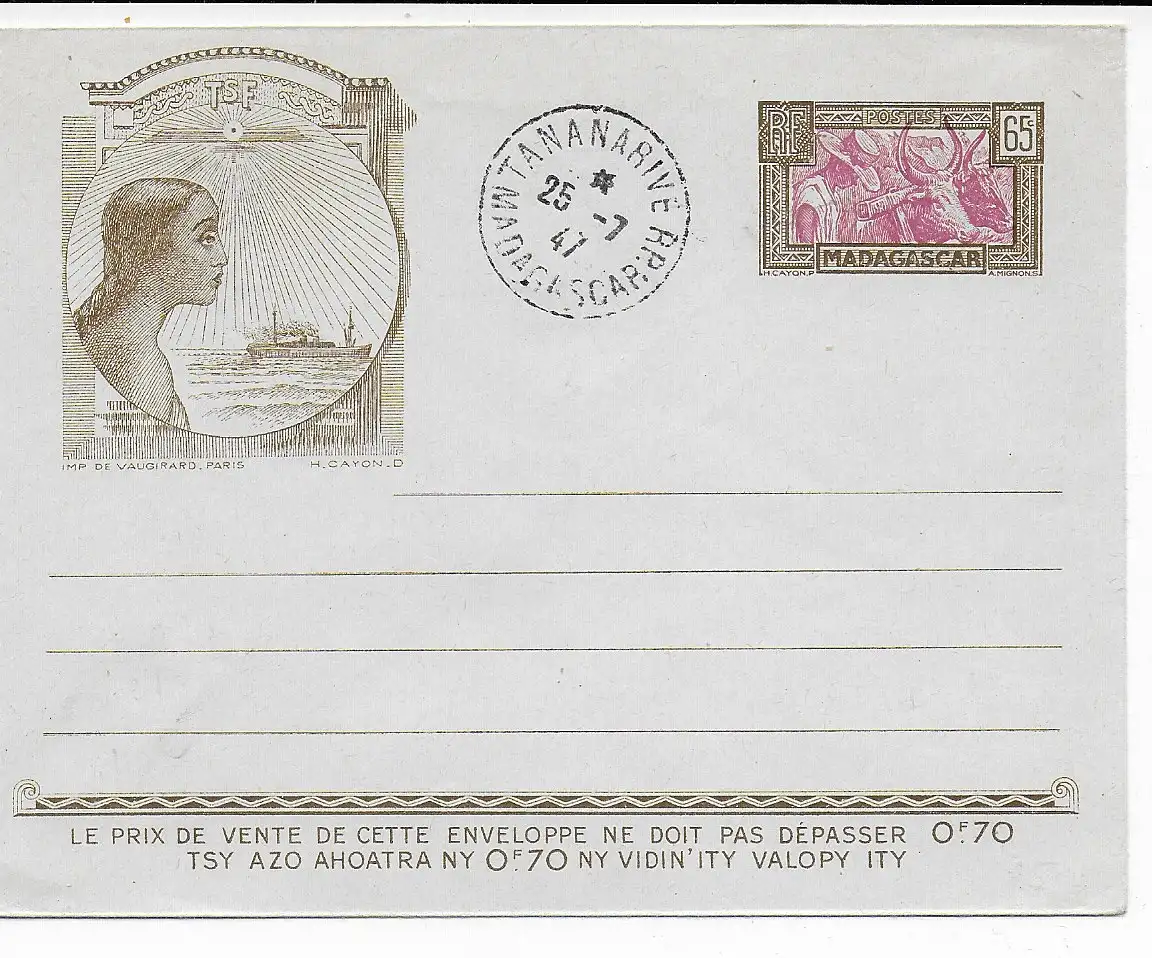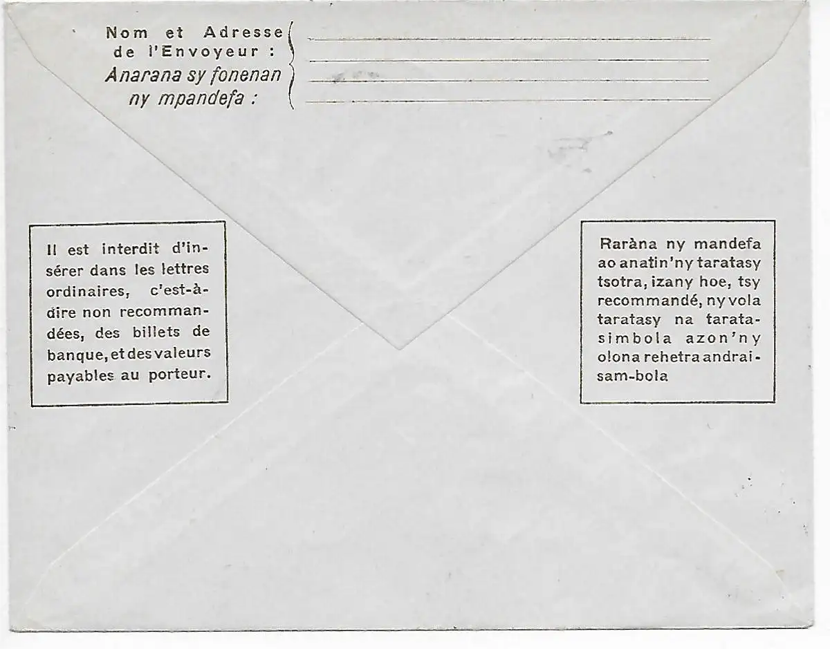 Blanko Umschlag Madagaskar gestempelt Tananarive 1947