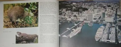 guter Zustand, geringe Gebrauchs- und Alterungsspuren: Deckel rechts oben bekritzelt - Umschlag teils leicht verschmutzt / etwas vergilbt - Seiten sauber und ordentlich - Umschlag und Seiten teils etwas eselsohrig, zur Datierung: auf Seite 45 wird eine Tournee für das New Zealand Symphony Orchestra für 1981 angekündigt - Das Land - Die Geschichte - Die Regierung - Die Bevölkerung - Maoritanga - Neuseeland und der Südpazifik - Internationale Beziehungen - Der Handel - Die Landwirtschaft - Die Industrie - Die Energie - Der Tourismus - Transport und Verkehr - Der Lebensstandard - Das Gesundheits- und Sozialwesen - Das Erziehungswesen - Literatur und Kunst - Der Sport - Neuseeländische Vertretungen in Übersee, kartoniert, ca. 27,5 x 21, 48 Seiten mit zahlreichen Bildern