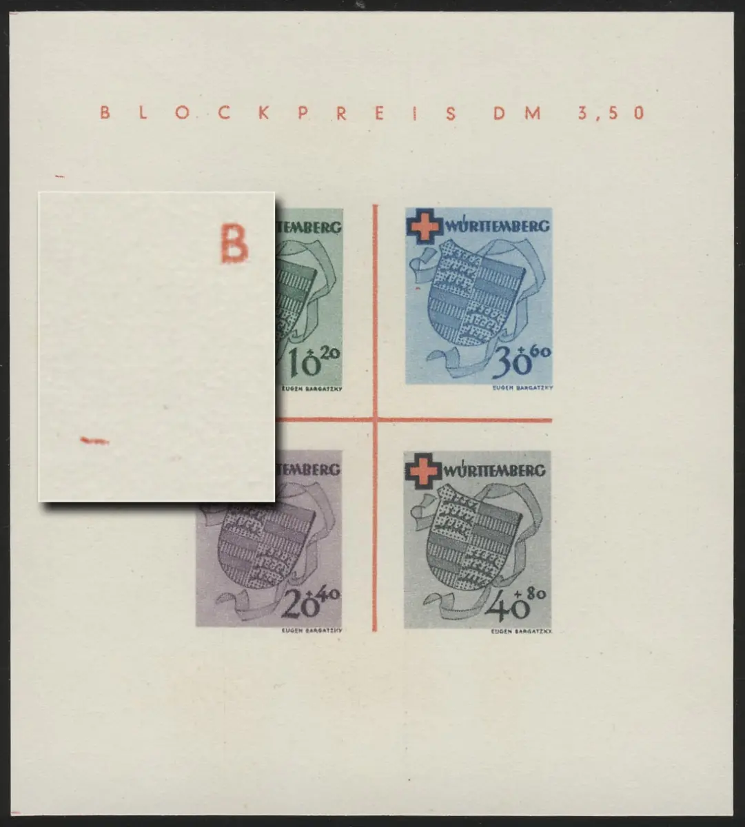 Block 1 Württemberg Rotes Kreuz Type I (*) original wie verausgabt