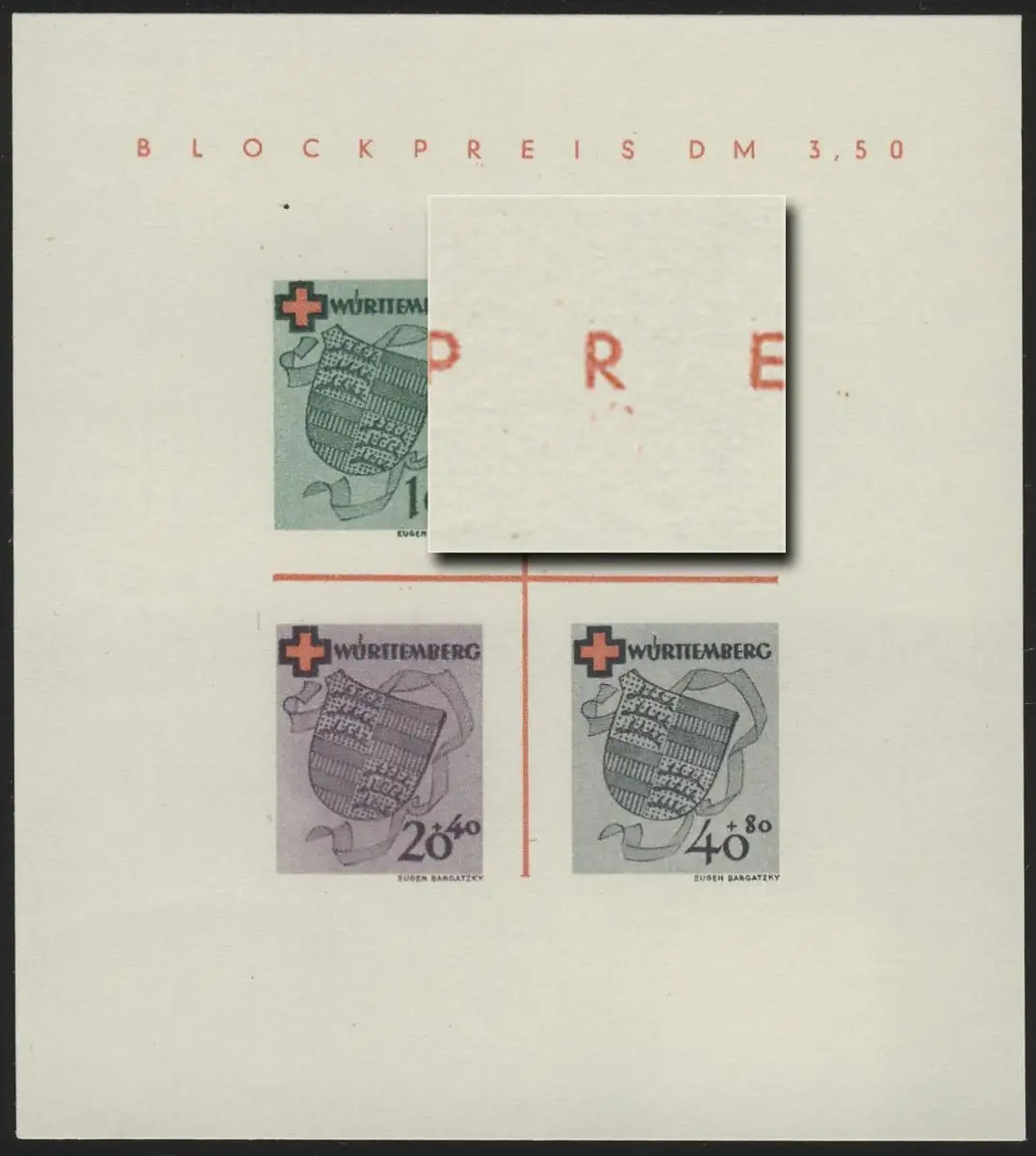 Block 1 Württemberg Rotes Kreuz Type IV (*) - original wie verausgabt