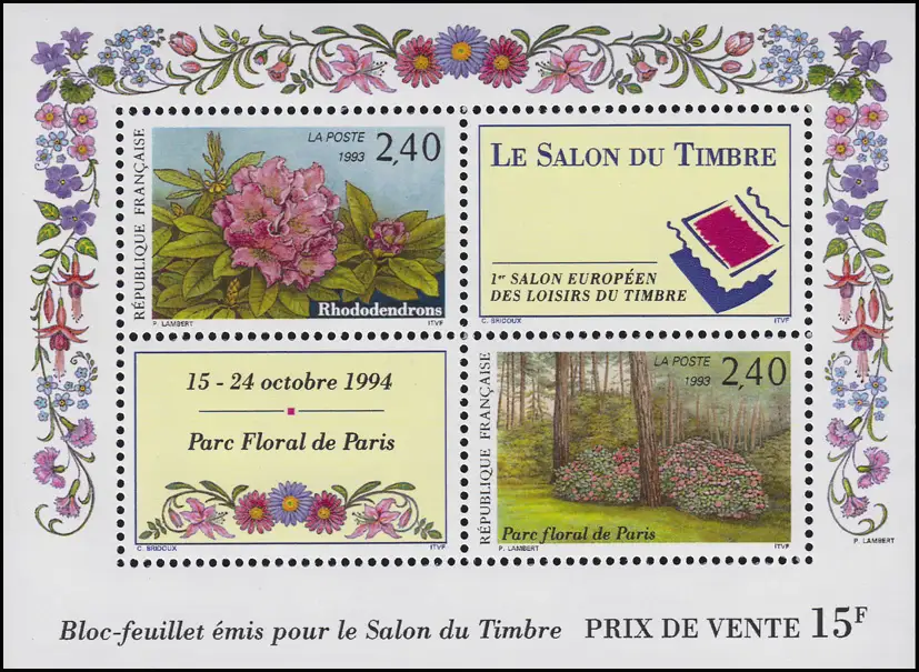 Block 13 Briefmarkenausstellung SALON DU TIMBRE Paris 1993, Block **