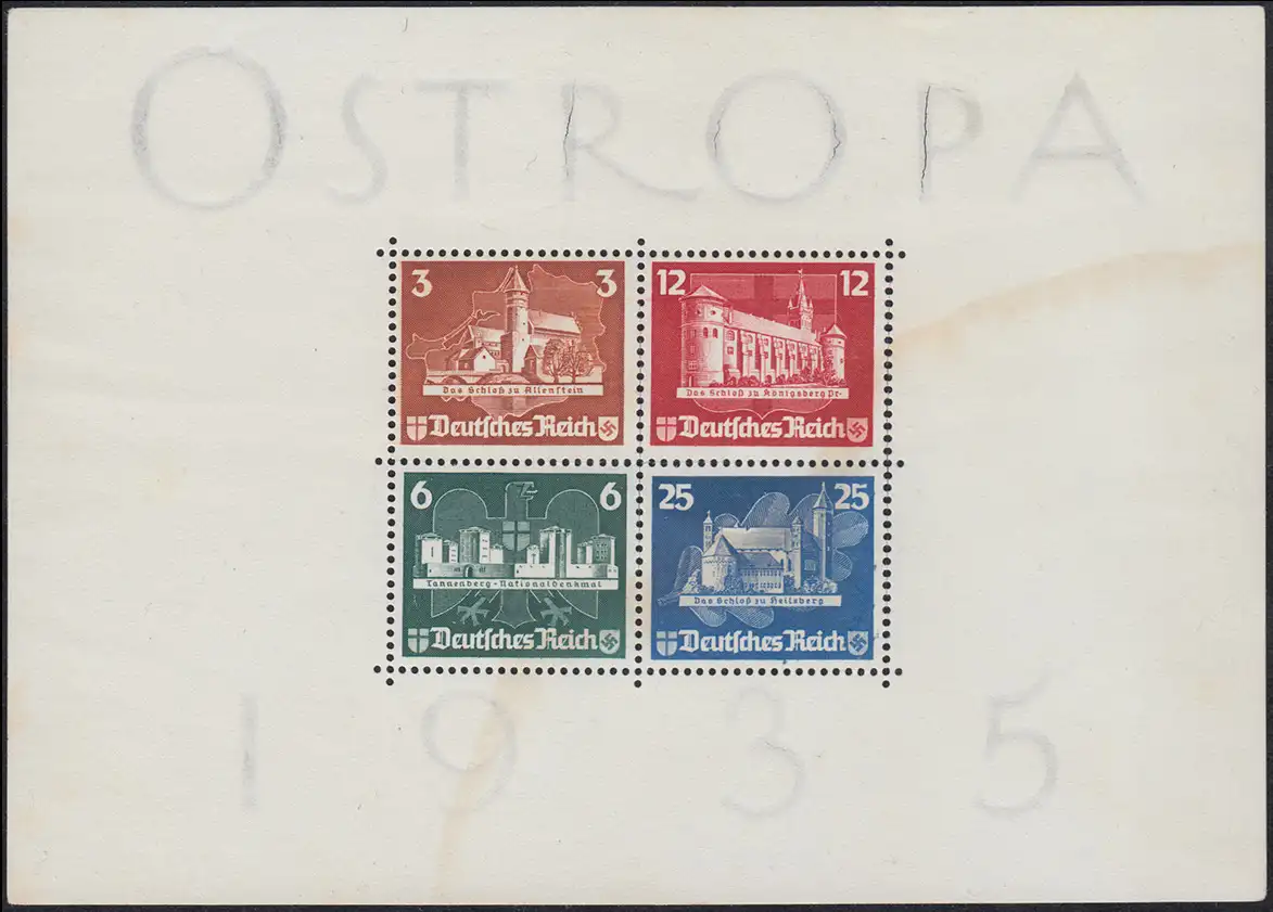 Block 3 OSTROPA, Gummi entfernt, Marken teils ausgebrochen / fleckig