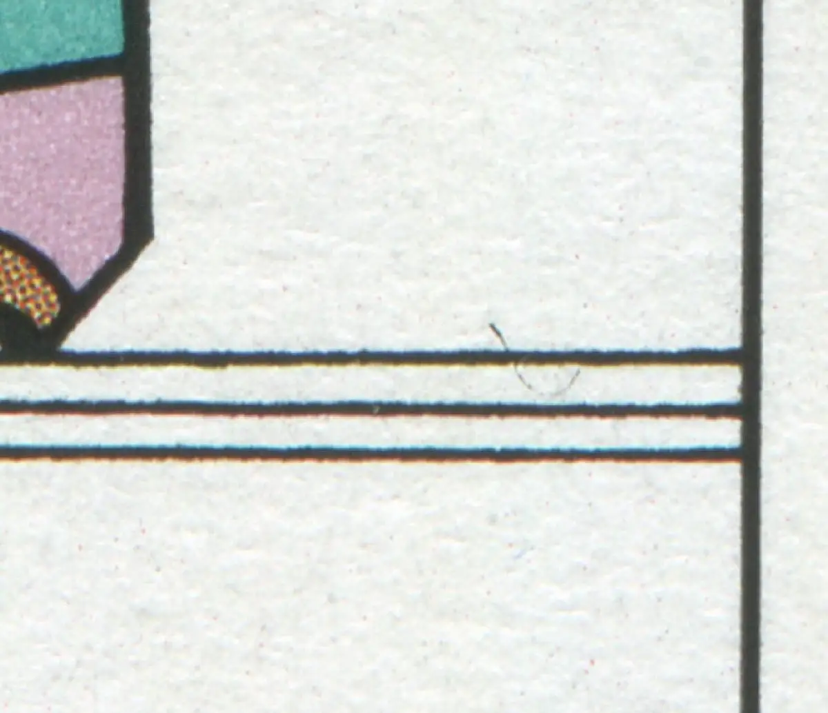 MICHEL-Plattenfehler II: sichelförmiger Bogen in der Dreierlinie am Hinterbein des Pferdes