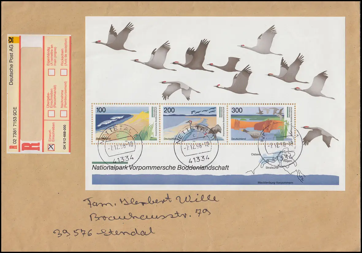 portogerechte Block-Einzelfrankatur auf großem Brief im Fernverkehr per Einwurfeinschreiben