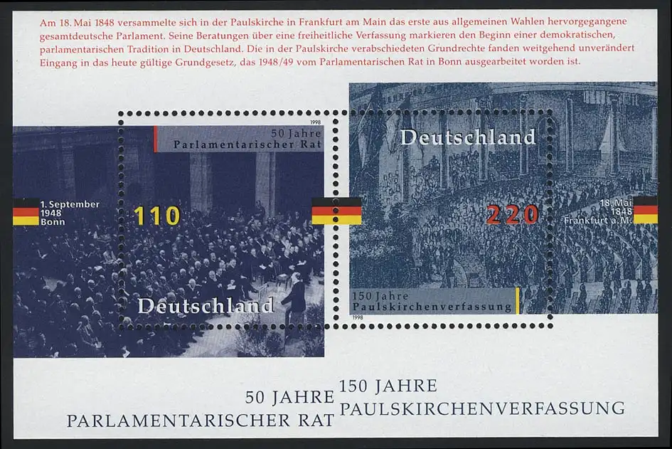 Block 43 Par. Rat / Paulskirche Verfassung - Set zu 10 Stück, alle postfrisch **