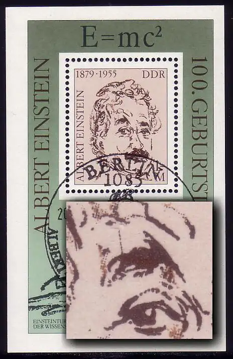Block 54 Albert Einstein 1979 mit PLF Strich über linker Augenbraue, ESSt