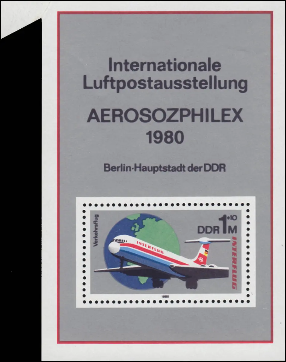 Block 59 INTERFLUG AEROSZOPHILEX 1980 - Block mit Anhang durch Verschnitt **