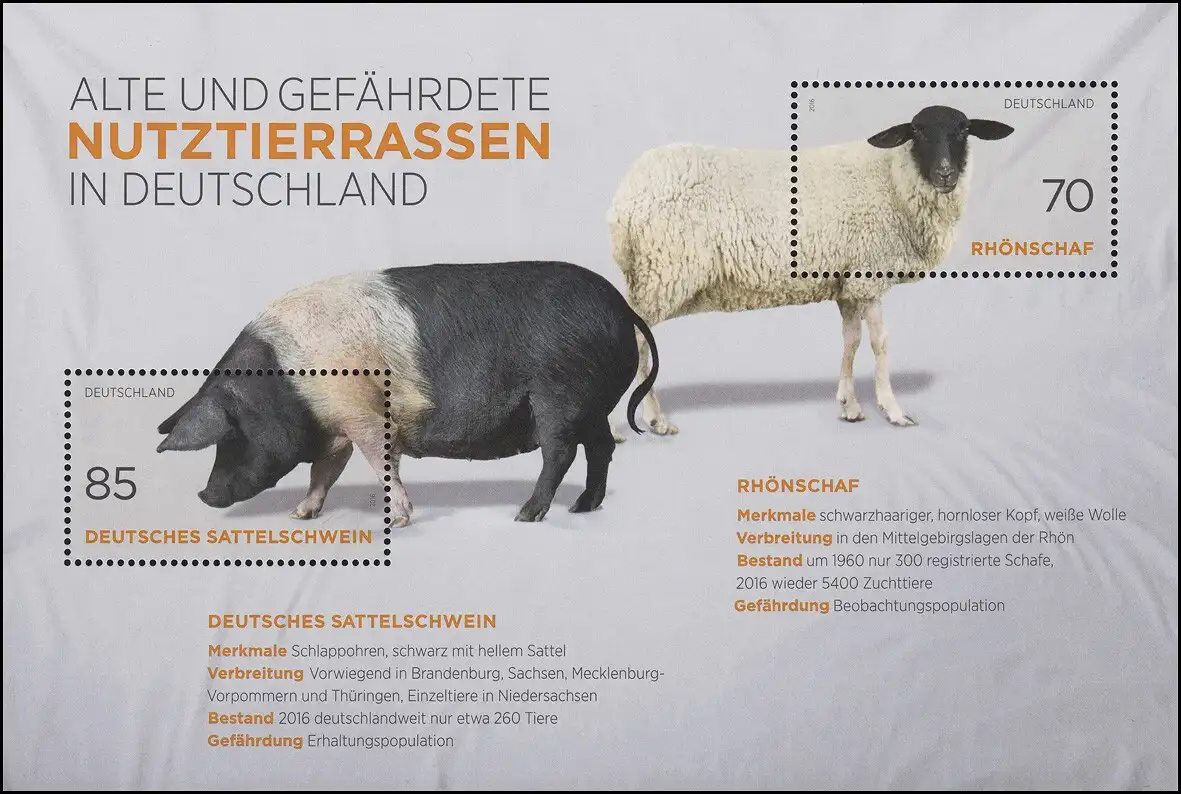 Block 81 Nutztierrassen Rhönschaf Sattelschwein, Set zu 10 Stück, alle ** / MNH