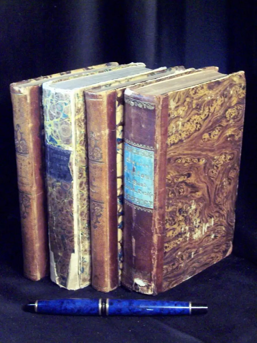 Freie Beschreibung: LEXIKON, THEATERGESCHICHTE, BÜHNE, DARSTELLENDE KUNST - 1. Band: A bis Bouilly nebst Nachtrag (Hier fehlen die Seiten IX-XII. Sie enthalten den Prospectus). Mit 4 Lithografien. 2. Band: Boulanger bis Devise. Mit 3 Lithos. 4. Band: Garrick bis Ker, Keren. Mit 1 Litho. 5. Band: Kette bis Niais. Mit einem Litho. 6. Band: Niccolini bis Sisyphus. Mit 1 Litho. 7. Band: Situation bis Zwischenspiel. Nachträge, Zusätze und Berichtigungen. Mit 1 Litho. - Frakturschrift, - Robert Blum Politiker, Verleger, Journalist und Dichter vor und während der 48er Revolution. Hingerichtet in Wien 1848. - erste (selten angebotene) Ausgabe des Lexikons, die 1842-46 in einer neuen Ausgabe erschien - Seiten IX bis XII fehlen, .deutlich bis stark berieben und bestoßen mit Randläsuren, deutlich nachgedunkelt, Stock- und Wasserflecken, mit Namenseintragung eines Vorbesitzers, Gelenke teils aufgeplatzt, im 6. Band fehlt eine der vierteiligen Illustration, Rücken teils etwas beschädigt mit kleinen Fehlstellen - -intern786+570-3470 - Halbleder (Hardcover) + 1x Pappband