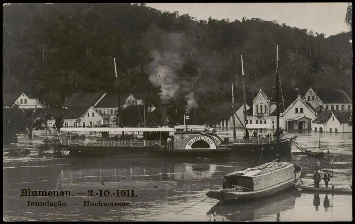 Blumenau Brasilien Inundação Hochwasser Dampfer Deutsche Kolonie Brasil 1911