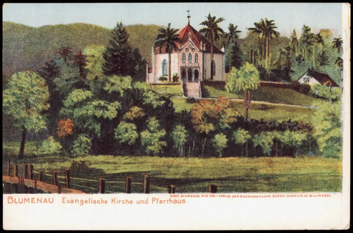 Blumenau Brasilien ev. Kirche und Pfarrhaus Deutsche Kolonie Brasil 1912