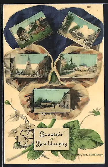 Blumengruss-AK Semblancay, Place de l`Eglise, Une Rue