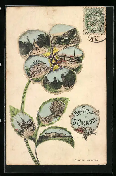 Blumengruss-AK St. Chamond, Eglise, Usine, Vue générale