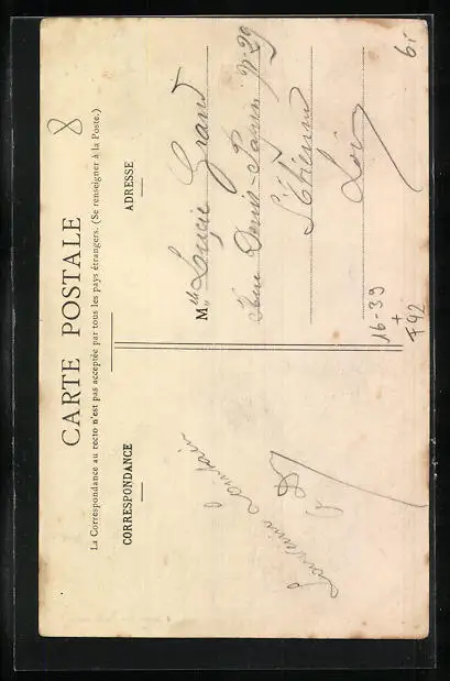 Personenbezogene Daten auf der Rückseite der Karte wurden durch blauen Textmarker unkenntlich gemacht. Die blauen Stellen sind auf die Vorderseite durchgeweicht und wirken sich negativ auf das Postkartenfoto aus