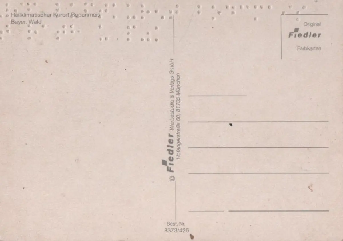mit BraillepunktenPostleitzahl:94249 (neu) / W 8373 (alt)