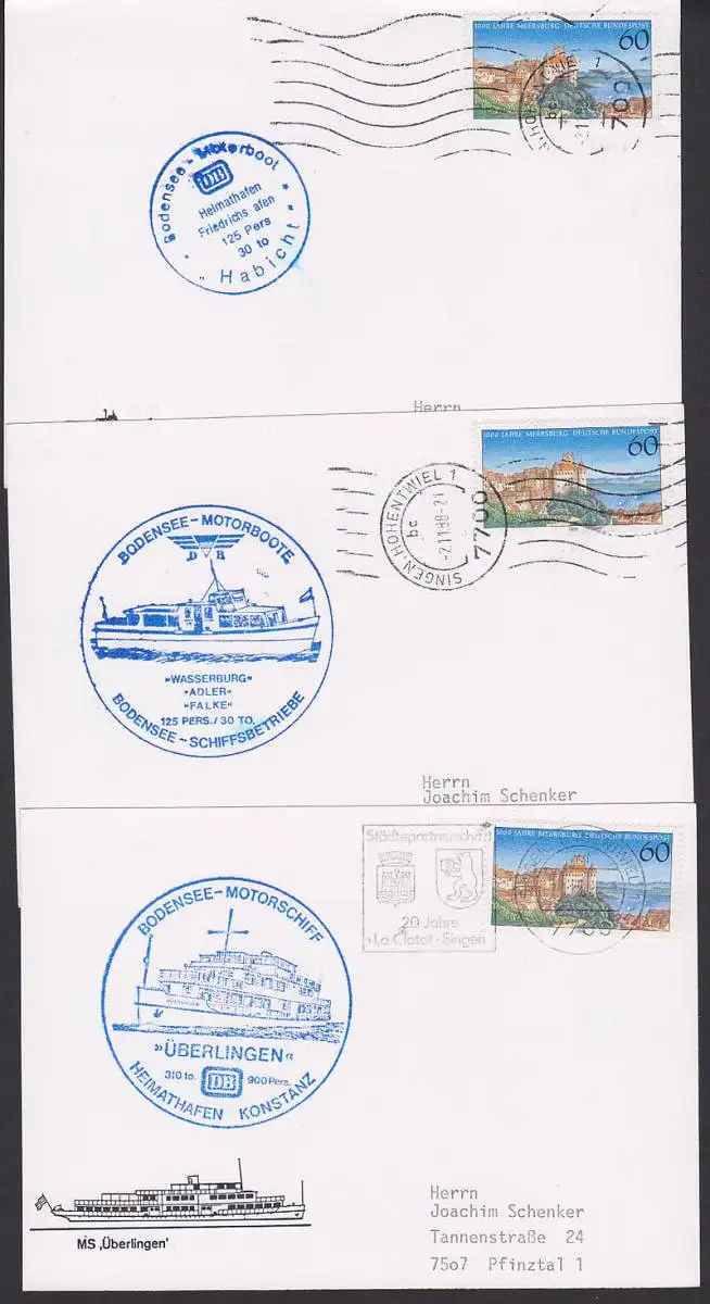 Bodensee-Motorschiff 3 Cachets MS Überlingen, Habicht, MB Falke