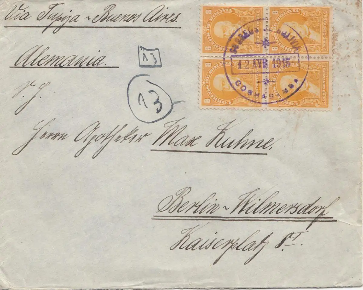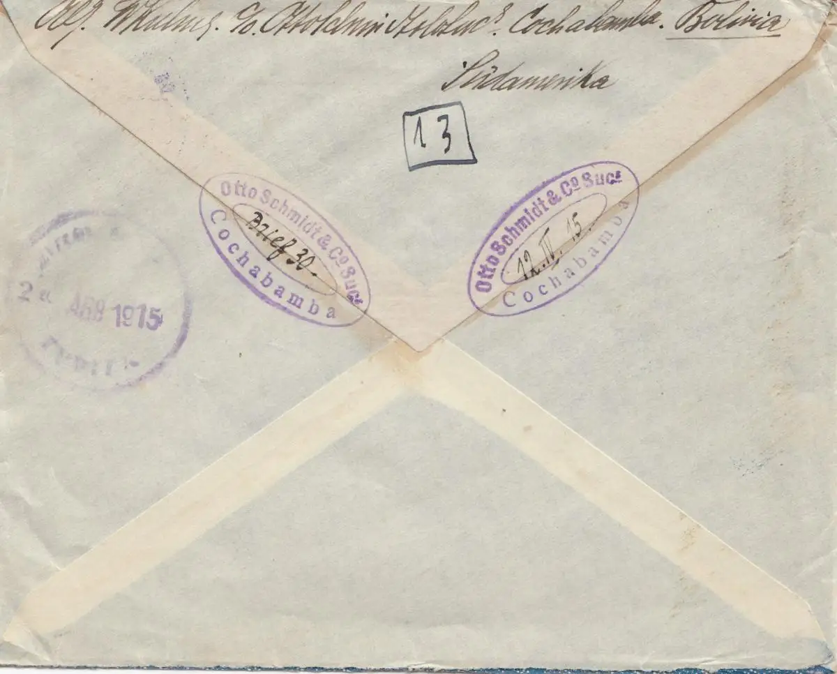 Bolivia/Bolivien: 1915: Cochabamba to Berlin/Germany