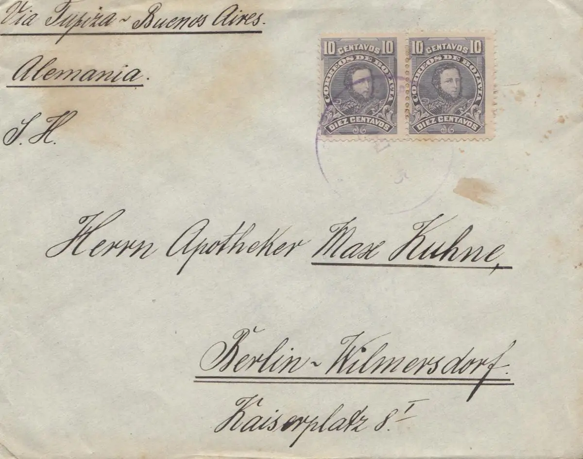 Bolivien: 1915 Cochabamba via Buenos Aires to Berlin/Germany