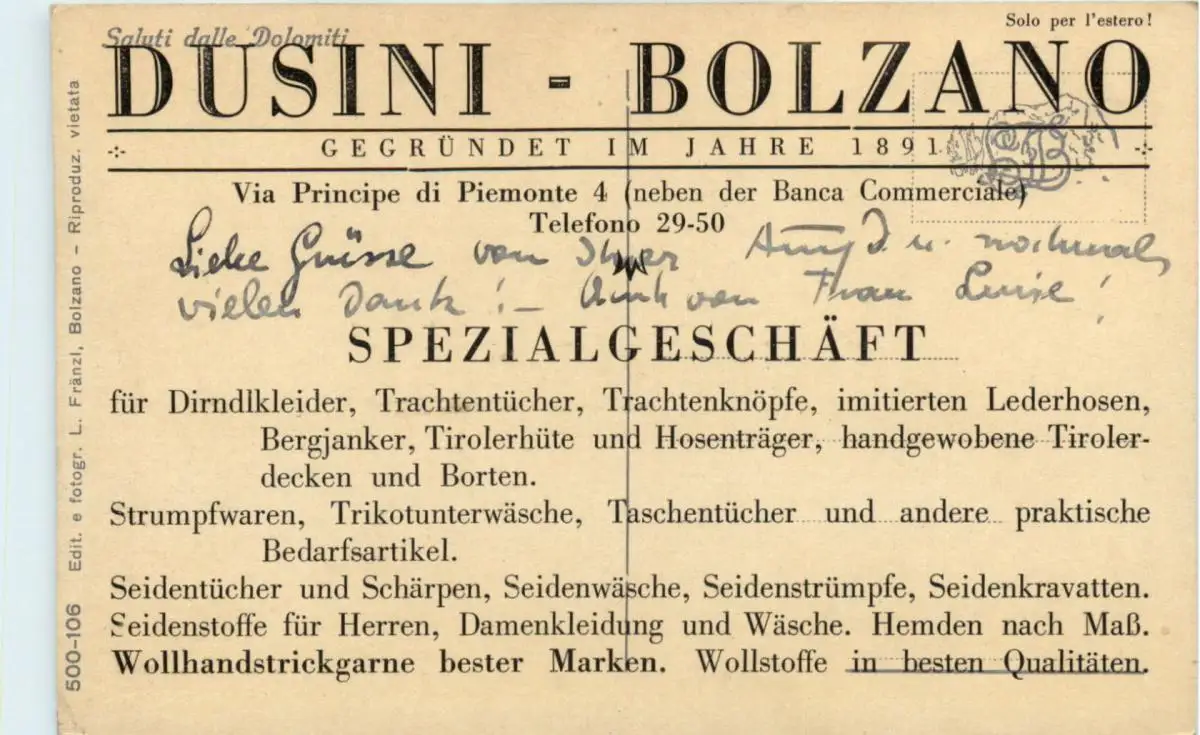 Danke. Alles Bestens. Können Sie mir allenfalls mitteilen, aus welchem Jahr die Postkarte stammt? Besten Dank.