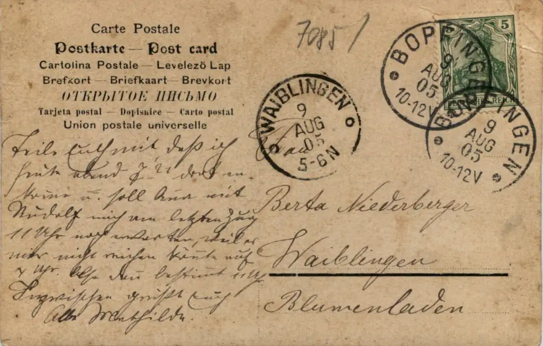 Danke. Alles Bestens. Können Sie mir allenfalls mitteilen, aus welchem Jahr die Postkarte stammt? Besten Dank.