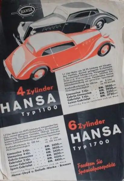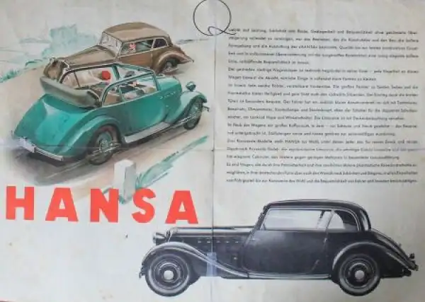 Borgward Hansa 1100 - 1700 Modellprogramm 1936 Automobilprospekt (0633)