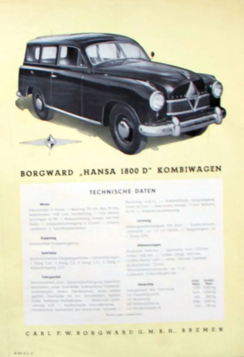 Borgward Hansa 1800 D Kombiwagen Modellprogramm 1953 Automobilprospekt (10072)