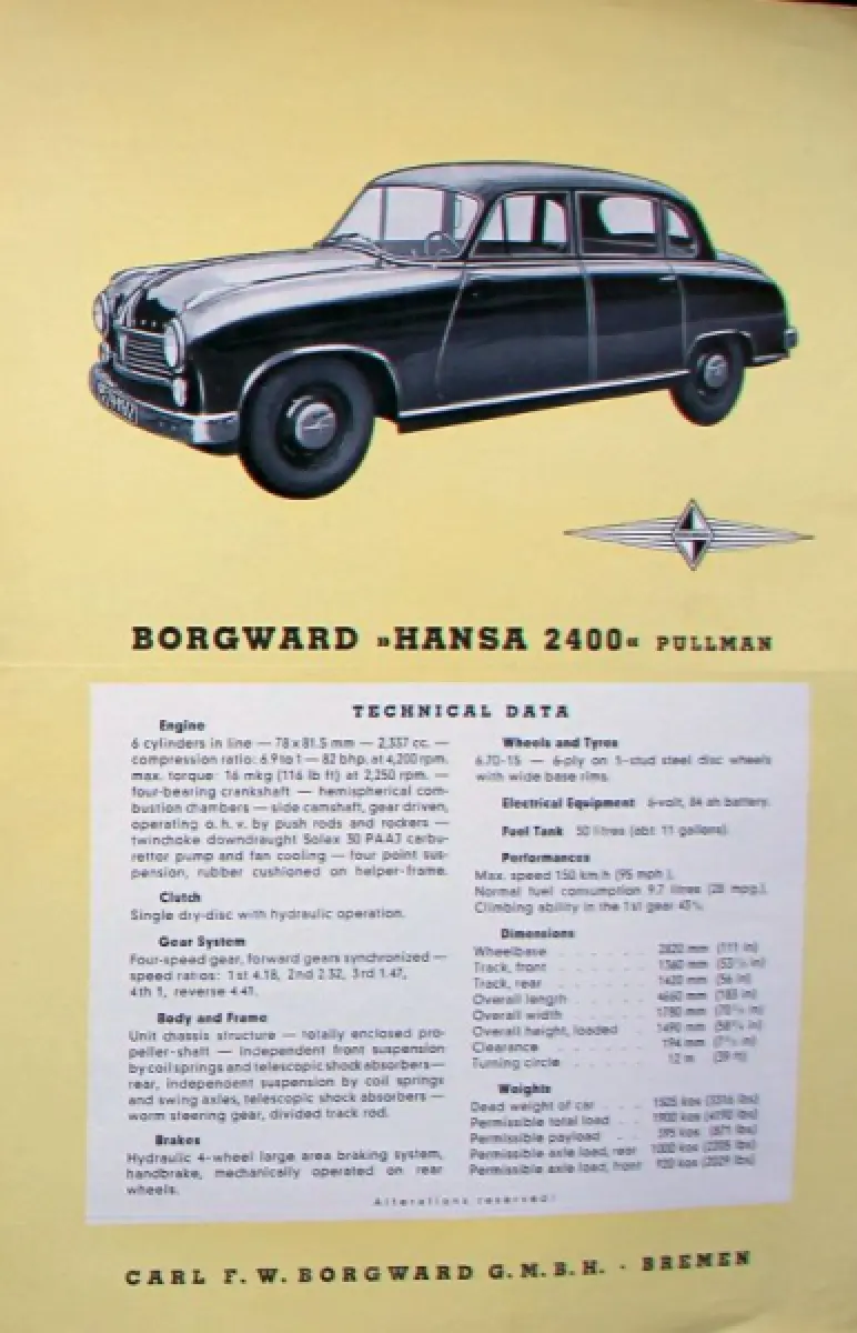 Borgward Hansa 2400 Pullman Modellprogramm 1952 Automobilprospekt (10074)