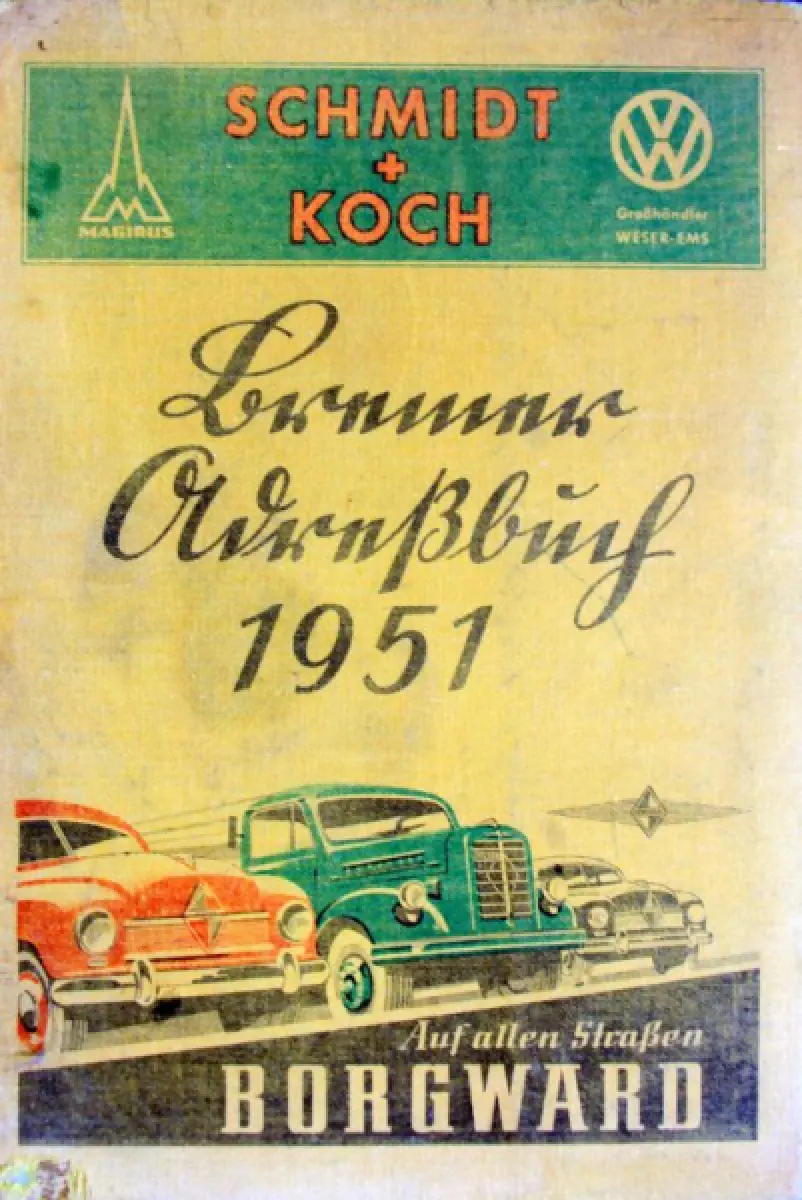 Borgward Modellprogramm 1951 Werbe-Aufsteller "Auf allen Strassen" (10411)