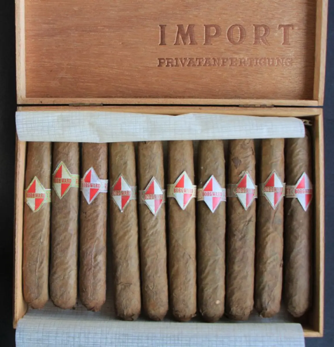 mit 10 Zigarren, Borgwardbanderolen (Repro) und LogoHolzbox mit Schießer "Privatanfertigung"