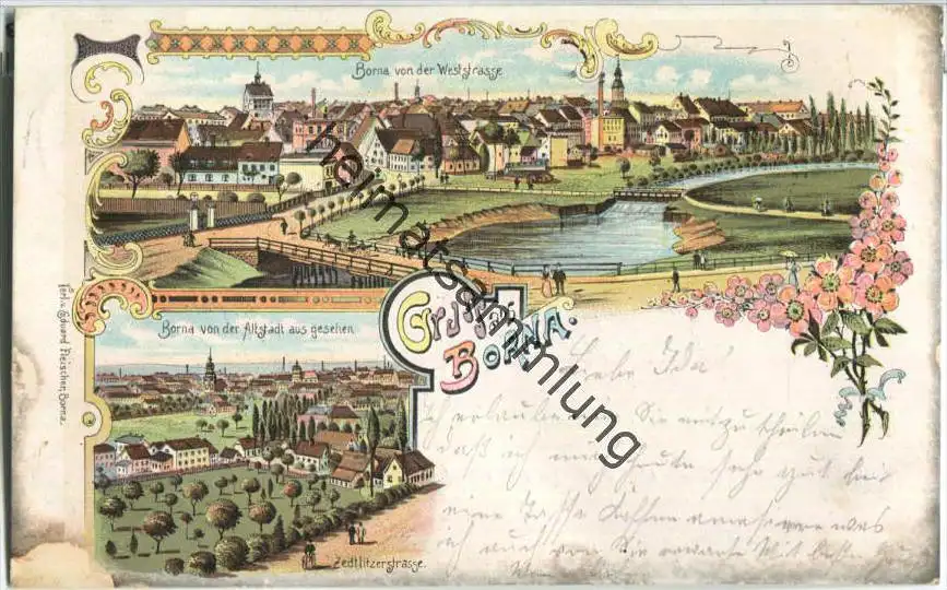 Borna - Lithographie - Verlag Eduard Fleischer Borna - leichte Gebrauchsspuren (G37970) gel. 1901