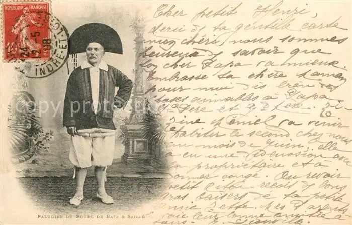 Bourg-de-Batz_Le Paludier du Bourg de Batz a Saille Bourg-de-Batz_Le postalisch gelaufen 1908 Erhaltung siehe scans [WerneD78] WernPID7