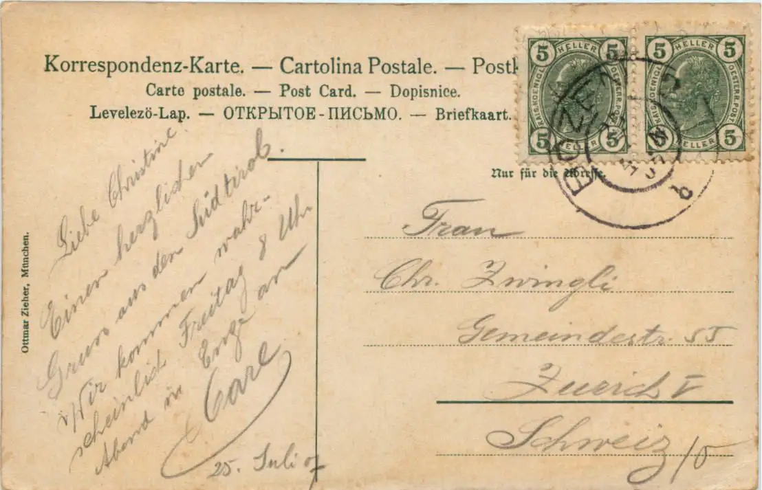 Danke. Alles Bestens. Können Sie mir allenfalls mitteilen, aus welchem Jahr die Postkarte stammt? Besten Dank.