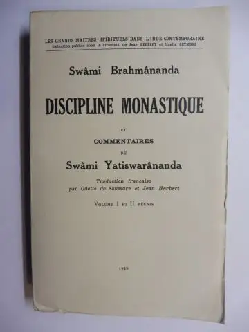 Brahmananda, Swami, Odette de de Saussure (Traduction francaise) und Jean Herbert: DISCIPLINE MONASTIQUE - ET COMMENTAIRES DE Swami Yatiswarananda. VOLUME I ET II REUNIS *.