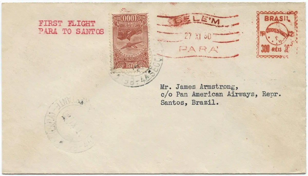 Erstflugbrief/First Flight Cover via PAA aus Para/Belem nach Santos gelaufen.