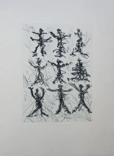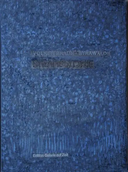 18 unbag. Bl. mit 7 ganzseitigen Grafiken von Strawalde auf 300 Gramm schweren Büttenpapier Alt Worms. Text in Bleisatz aus Helvetica, gesetzt von Harald Weller. Druck der Radierungen von: Dieter Béla. Original Leineneinband von Markus Rottmann. Format: 53 x 39 cm. Nummeriertes und von Volker Braun und Strawalde signiertes Exemplar. Tadelloses Exemplar mit dem unikaten Einband von Strawalde.