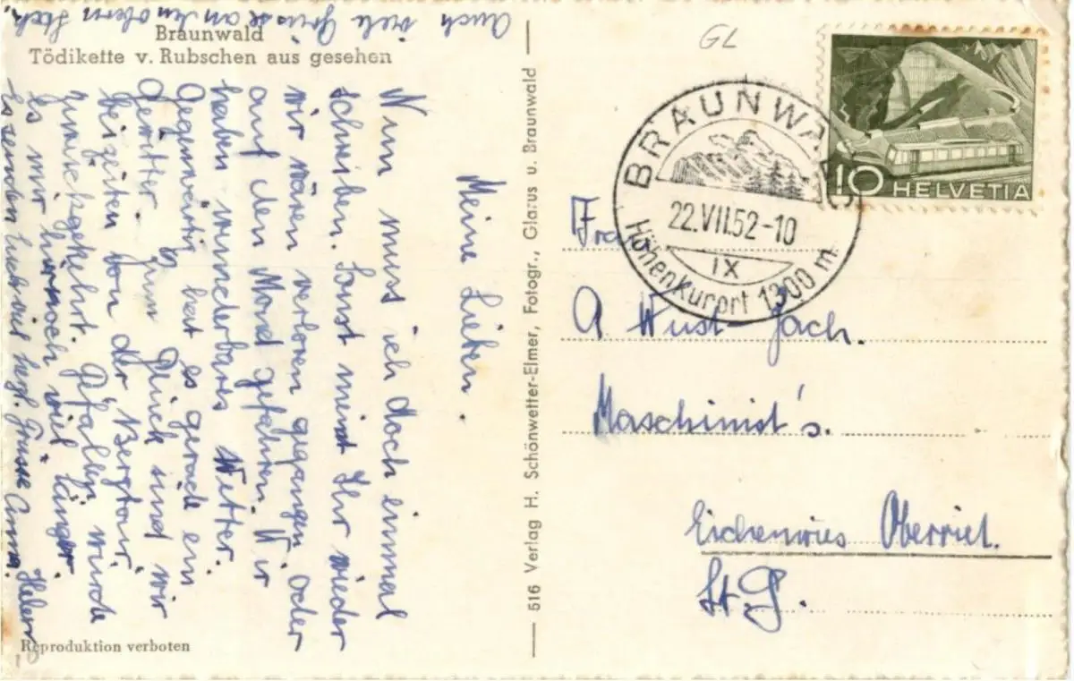 Danke. Alles Bestens. Können Sie mir allenfalls mitteilen, aus welchem Jahr die Postkarte stammt? Besten Dank.