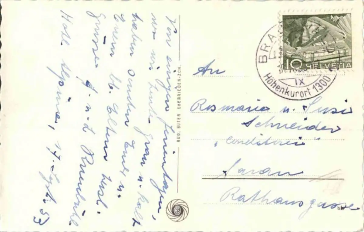 Danke. Alles Bestens. Können Sie mir allenfalls mitteilen, aus welchem Jahr die Postkarte stammt? Besten Dank.