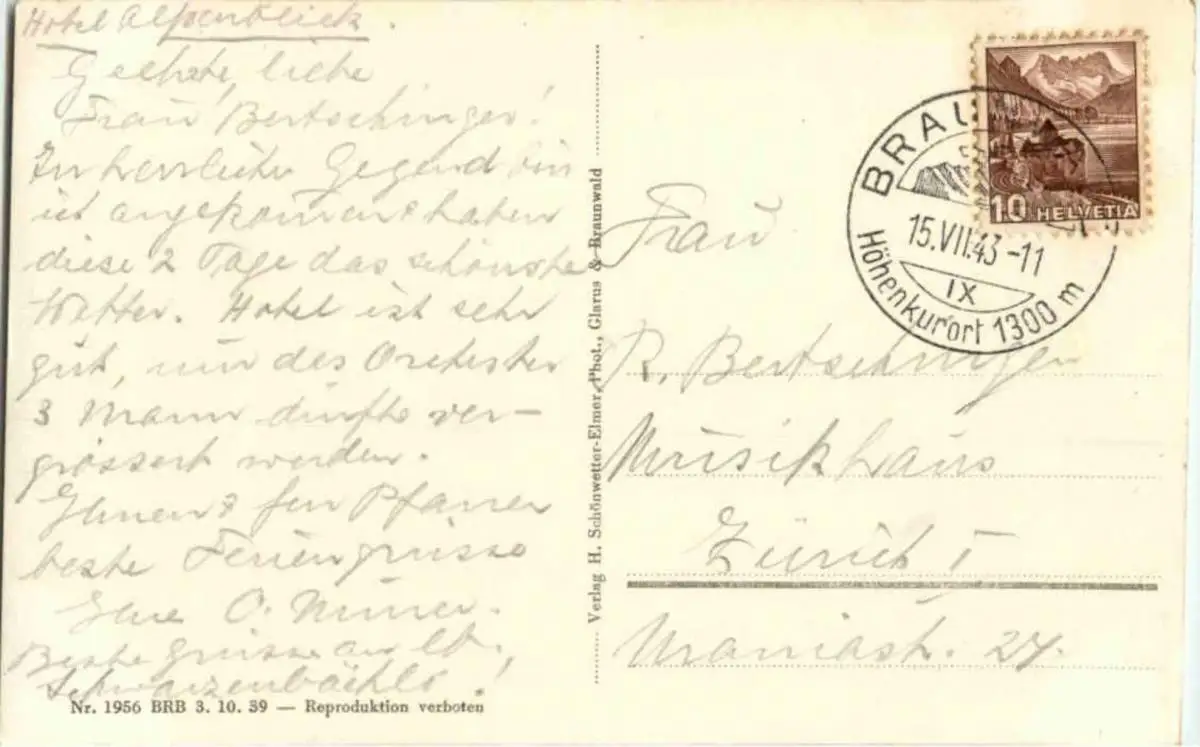 Danke. Alles Bestens. Können Sie mir allenfalls mitteilen, aus welchem Jahr die Postkarte stammt? Besten Dank.