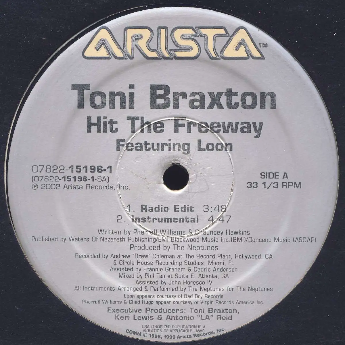 12" Maxi Toni Braxton - Hit The Freeway, neutrales Cover, no original sleeve, Zustand Platte VG+; Made in United States 2002 Arista 07822-15196-1, Tracks Radio Edit 3:48, Instrumental 4:47, Album Version 4:50, Acappella 4:48