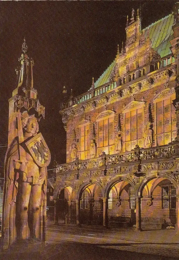 Bremen, Roland und Rathaus bei Nacht ngl F8389
