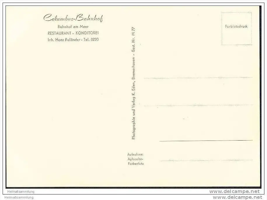 Bremerhaven - Columbuskaje - Columbus-Bahnhof - Restaurant Konditorei - Inhaber Hans Ruländer - Verlag K. Eden Bremerhaven (G18172) *