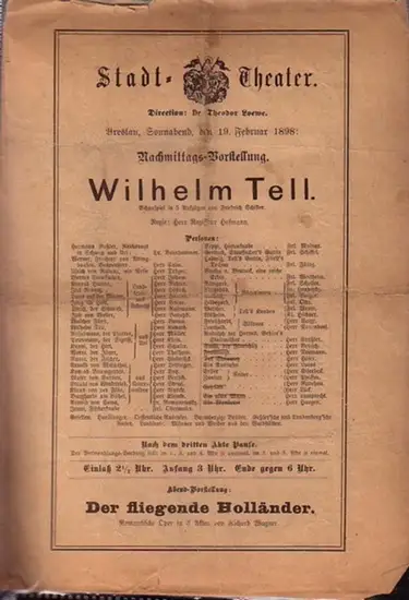 Breslau, Stadt-Theater. - Theodor Loewe (Dir.). - Schiller, Friedrich von: Programmzettel zu: Wilhelm Tell. Schauspiel in 5 Aufzügen. Regie: Herr Hofmann. Aufführung: Stadt - Theater am 19. Februar 1898. Direction: Theodor Loewe. (Aus der Breslauer Theate
