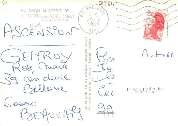 Breteuil_Oise Vue d’ensemble aerienne Breteuil Oise postalisch gelaufen 1988 Erhaltung siehe scans [WerneD78] WernPID7